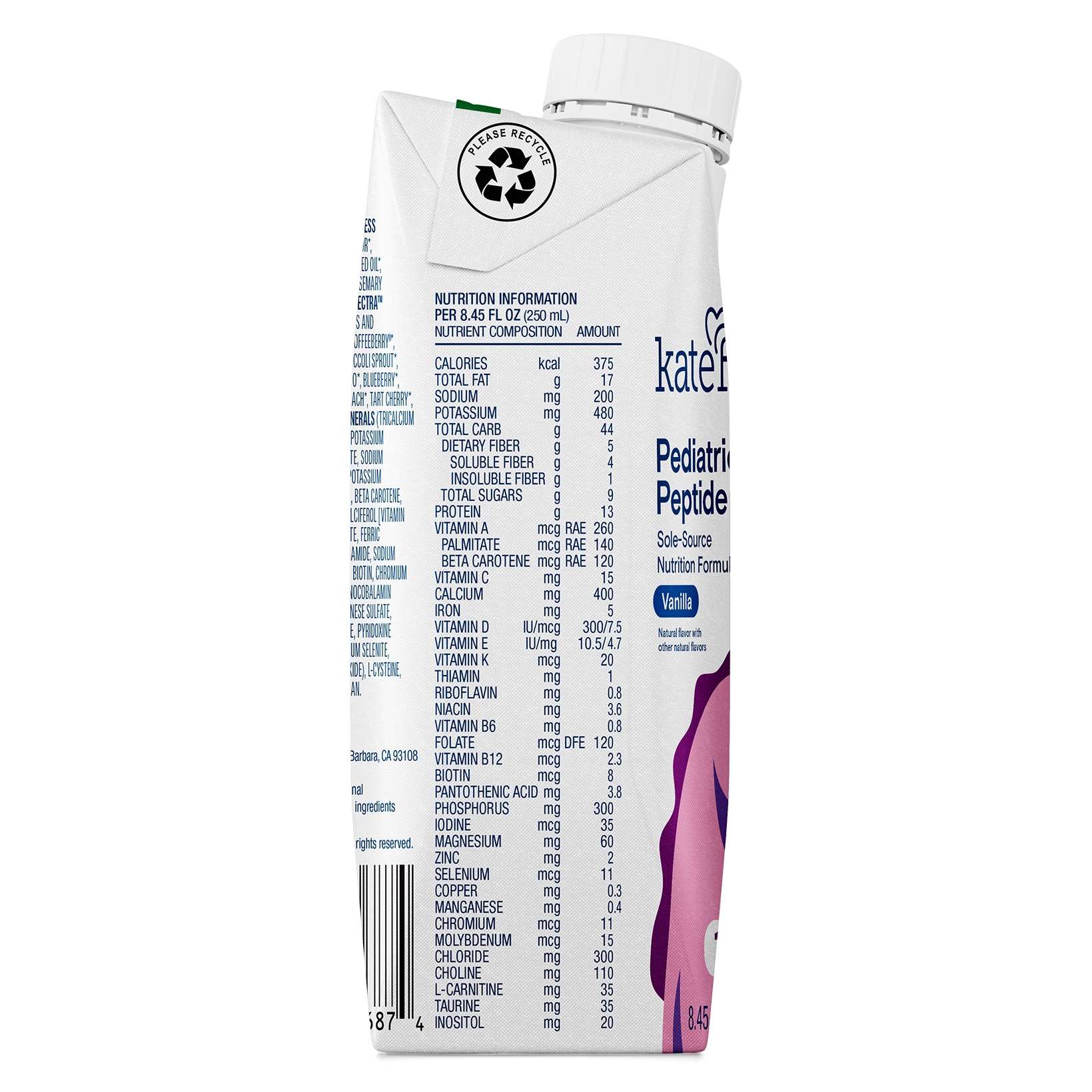 Kate Farms Peptide 1.5 Pediatric Oral Supplement is designed for easy digestion, Kate Farms Pediatric Peptide 1.5 contains 13 grams of hydrolyzed organic pea protein and 27 vitamins and minerals. Thoughtfully prepared with high-quality ingredients, Pediatric Peptide 1.5 is a high-calorie, sole-source nutrition option for tube feeding or drinking.