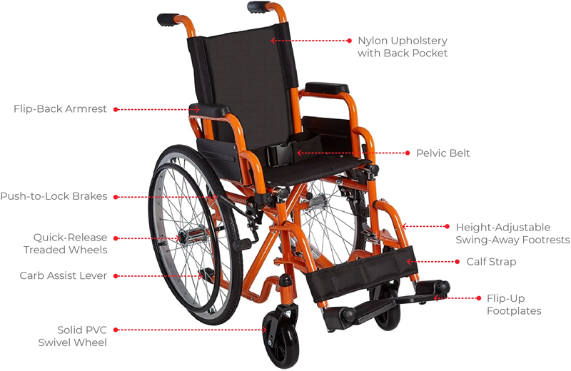 Ziggo lightweight wheelchair is designed for indoor and outdoor use for children with special needs. The lightweight manual wheelchair is convenient, durable, inexpensive, and adaptable, allowing maximum movement and portability. Ziggo comes in a variety of seat sizes (12", 14", 16", and 18"), all of which include vivid colors that kids can enjoy while on the go. Ziggo compact wheelchair folds up easily for storage and transportation. For easier inside and outdoor access, the wheelchair has quick-release PU rear wheels and sturdy PVC front wheels. The stainless steel wheelchair boasts latex-free nylon upholstery, a back pocket, and flip-back padded desk-length arms. Individual demands can be met with a variety of accessories.