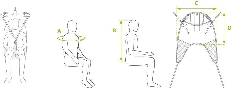 - Full body supportive design for safe general transfers from bed, chair, or commode